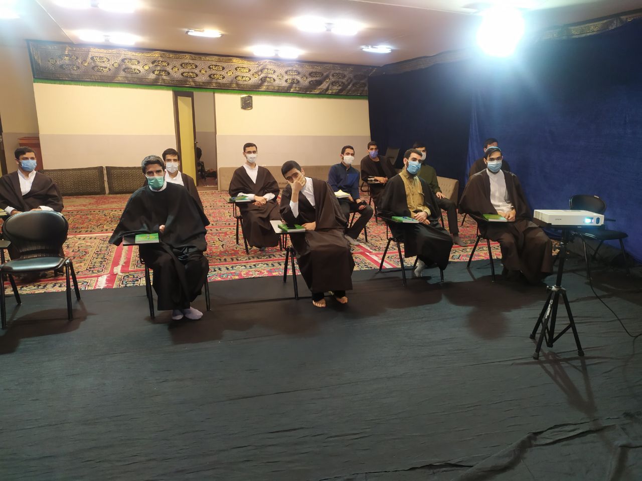 گزارش تصویری کلاس حضوری تجوید قرآن ، ویژه طلاب پایه اول ، حوزه امام حسین (ع) با رعایت کامل پرتکل های بهداشتی ، دی ماه ۹۹ ، استاد حجت الاسلام علی رجبی