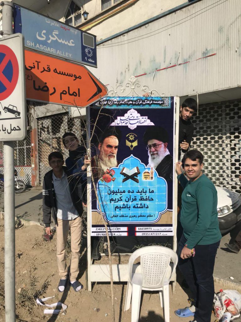 نصب تابلو جديد موسسه ، توسط قرآن آموزان موسسه فرهنگي قران و عترت امام رضا(عليه السلام )تهران